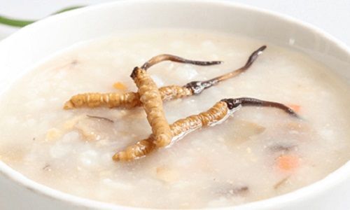 將冬蟲夏草渣過水泡軟,取其汁汁和蛋清、蛋黃分別攪勻,放入鮮鮑、雞肉、生姜和大米一起煮熟,最后,調(diào)入適量的鹽和胡椒粉調(diào)味即可食用。