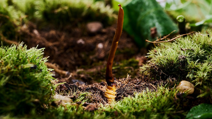 每年入秋,草原上的風開始變涼,夜里能結出薄霜的時候,蟲草的故事就開始了。我們牧民都知道,這時候草原地下藏著一種叫“蝙蝠蛾”的蟲子,它們從卵里孵出來后,會在土里鉆來鉆去,啃食草根長大。這蟲子比我們的小指還細,渾身是白白的肉,在土里要待上兩三年,就等著冬天到來,變成蛹,再羽化成飛蛾。可偏偏草原上還藏著另一種“看不見的力量”——蟲草真菌的孢子,它們像草原上的細沙,悄悄落在土里,一旦遇到蝙蝠蛾幼蟲,就會鉆進蟲子的身體里。?
