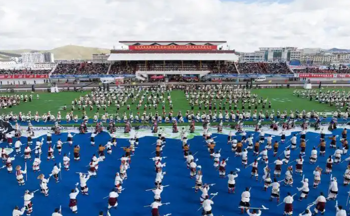 60年來,在黨中央親切關(guān)懷、西藏自治區(qū)黨委堅(jiān)強(qiáng)領(lǐng)導(dǎo)及對口支援省市和企業(yè)無私援助下,那曲各項(xiàng)事業(yè)取得全方位進(jìn)步與歷史性成就。開幕式文藝演出以“馬”文化為核心,分三大篇章展開,四川、青海等地馬術(shù)表演隊(duì)與本地隊(duì)伍共展精湛技藝;千人共舞《禮贊甲子》、器樂合奏《風(fēng)從浙江來·樂在那曲揚(yáng)》等節(jié)目,生動(dòng)呈現(xiàn)西藏自治區(qū)成立60年輝煌成就與對口支援成果。