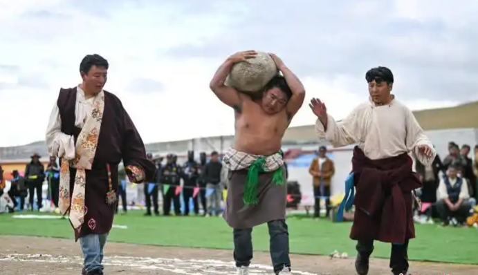 圖為那曲恰青賽馬節(jié)抱石頭比賽現(xiàn)場。 貢嘎來松 攝